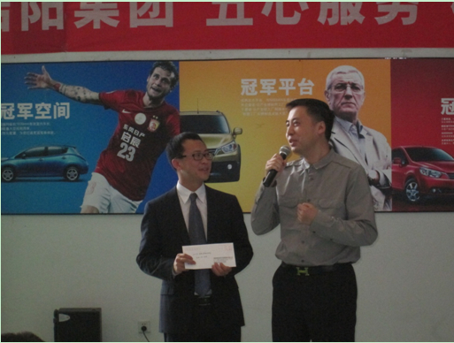 ??? 2014年4月22日,,,,,,,,威廉希尔·(William Hill)中文官方网站第一季度“五心折务”模范店颁奖仪式在锦江园区盛大举行。。。。。。。集团陈斌总裁、王麟副总裁、治理公司各部长及成都地区分公司总司理出席了此次颁奖仪式,,,,,,,,威廉希尔·(William Hill)中文官方网站春风日产启辰专营店首次夺得“五心折务”模范店声誉。。。。。。。